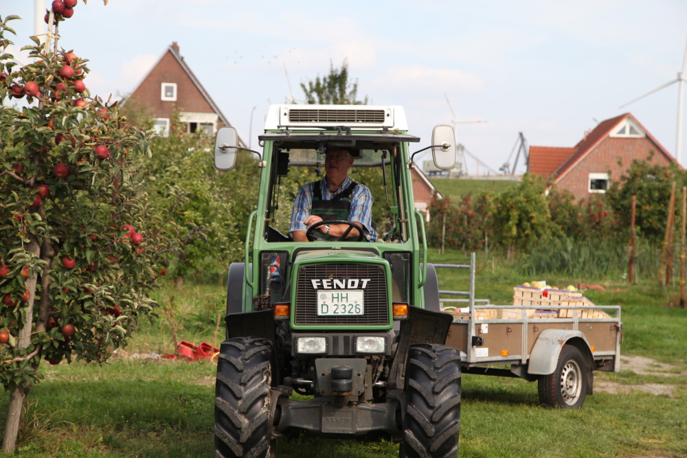 Herbstanfang in Finkenwerder und im Alten Land - das bedeutet vor allem eines: Es wird fleissig geerntet in Europas größtem zusammenhängenden Obstanbaugebiet! Unzählige Traktoren brummen auf den dortigen Obstplantagen und sammeln die mehr als fünfzehn heimisch angebauten Apfel- und Birnensorten von den Bäumen. Angefangen vom saftigen 'Elstar' über den säuerlichen 'Granny Smith' bis hin zur Traditionssorte 'Topaz' ist hier für jeden Geschmack etwas dabei!